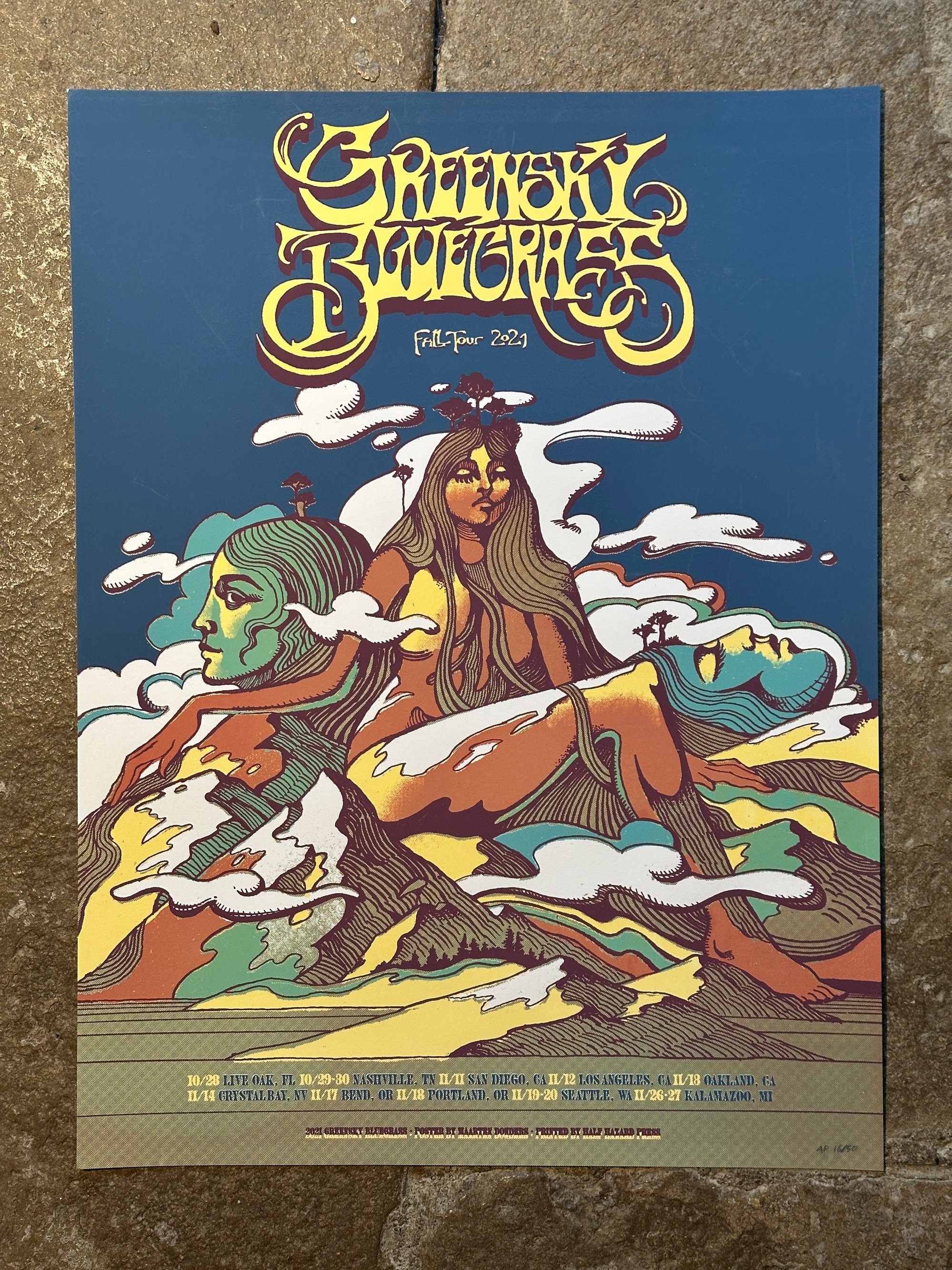 These are the artist copies of the screenprint poster I designed for Greensky Bluegrass' Tour in 2021.