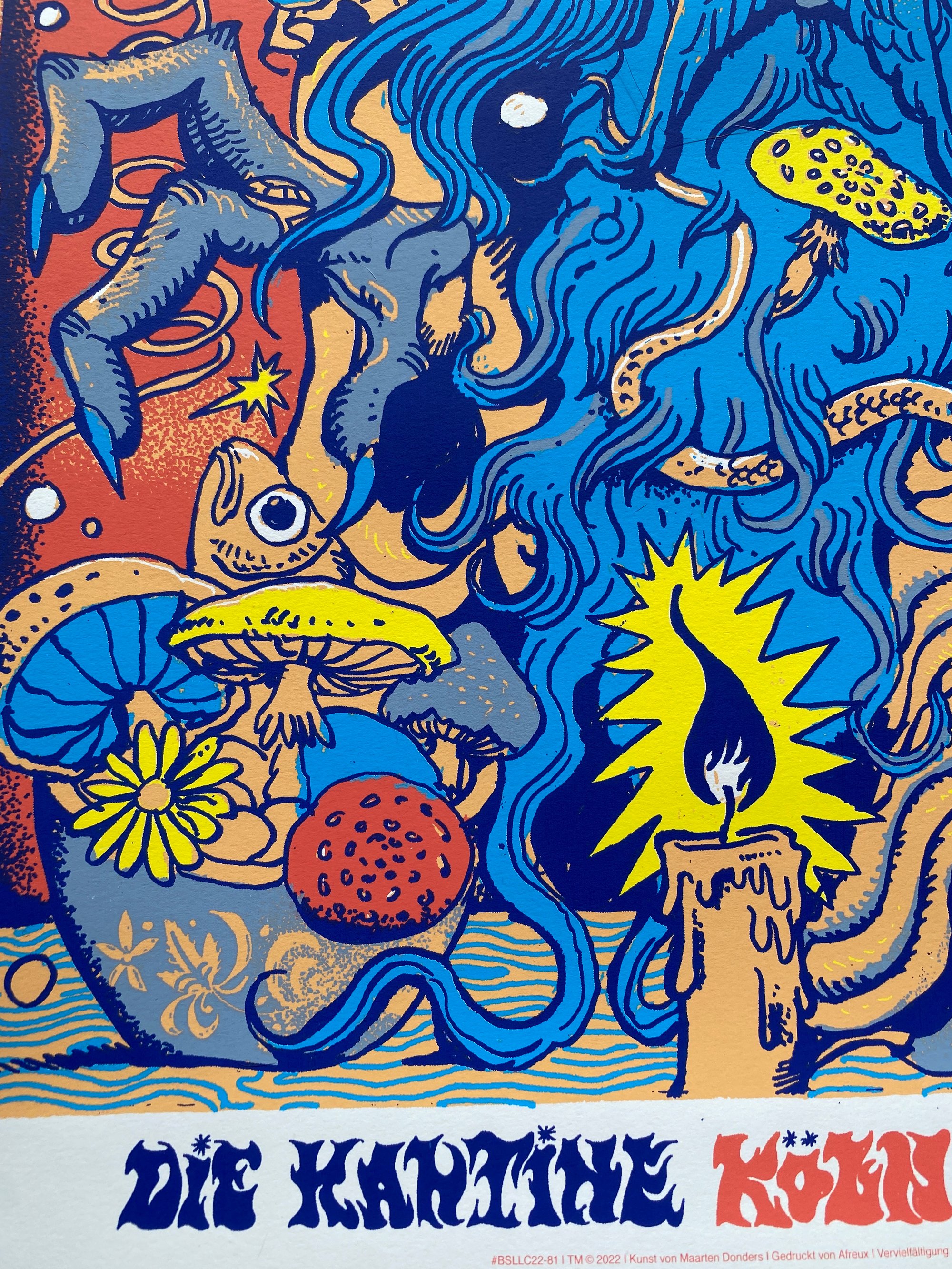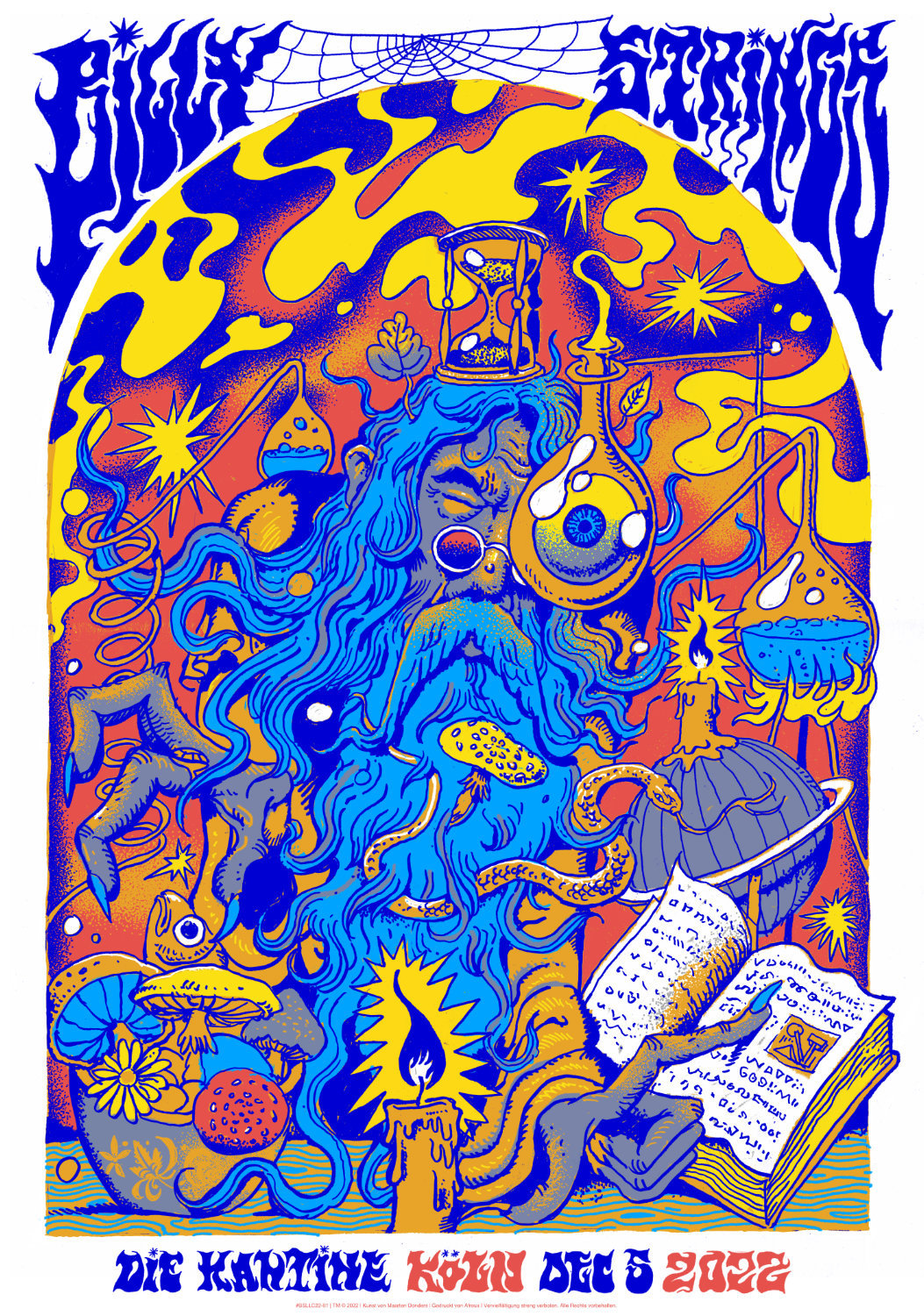 These are the final artist copies of the poster I designed for Billy Strings’ show at Die Kantine in Cologne, Germany on 12-05-22.
