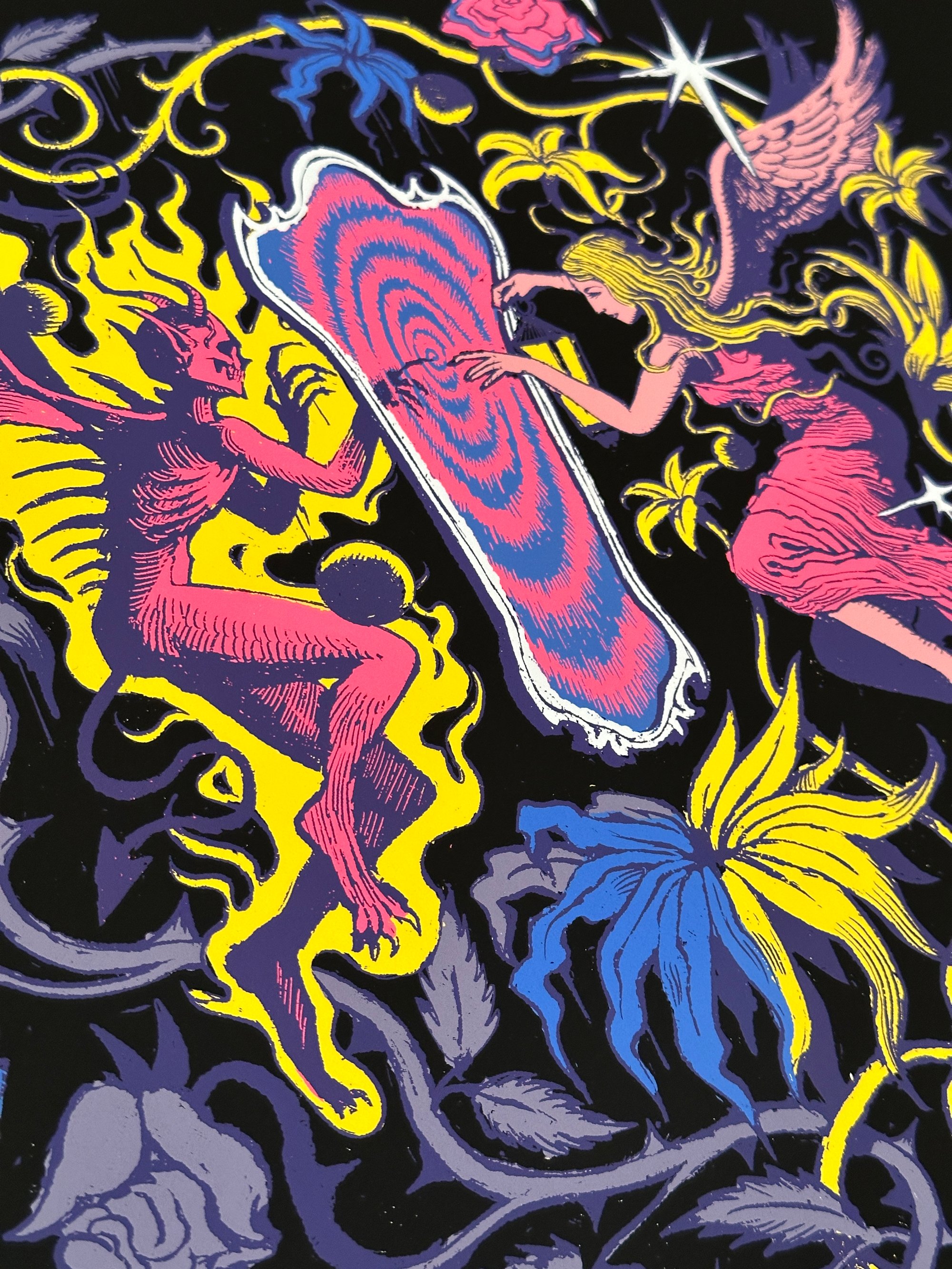 These are the artist proofs of the Johnny Blue Skies 2025 screenprinted tour poster I designed.