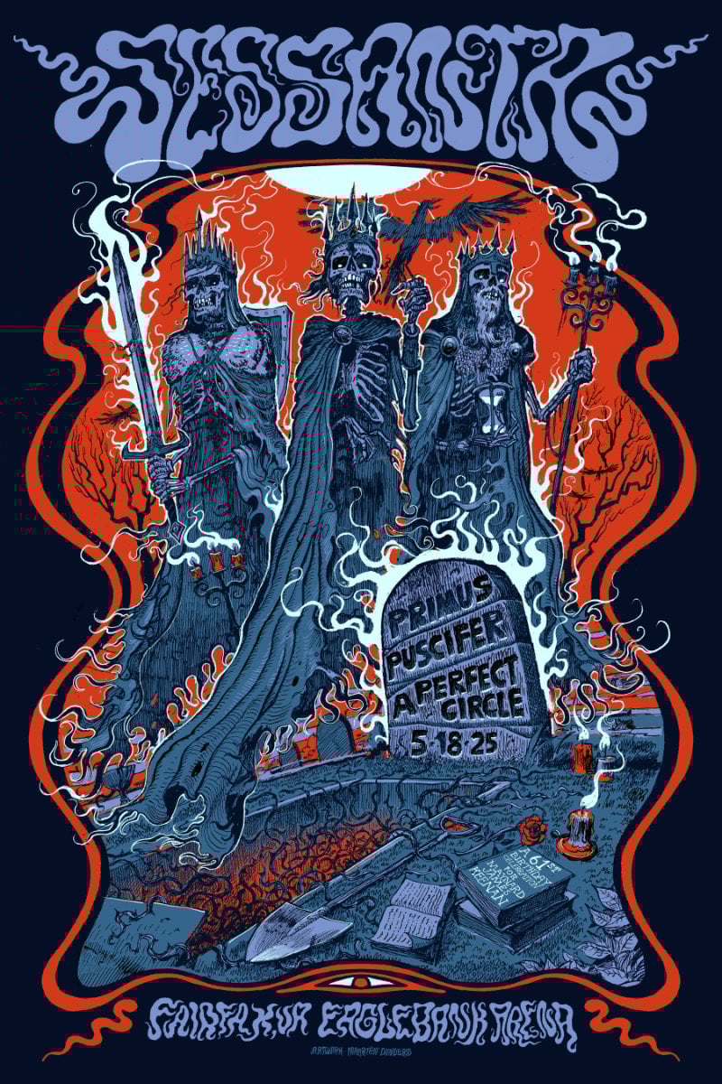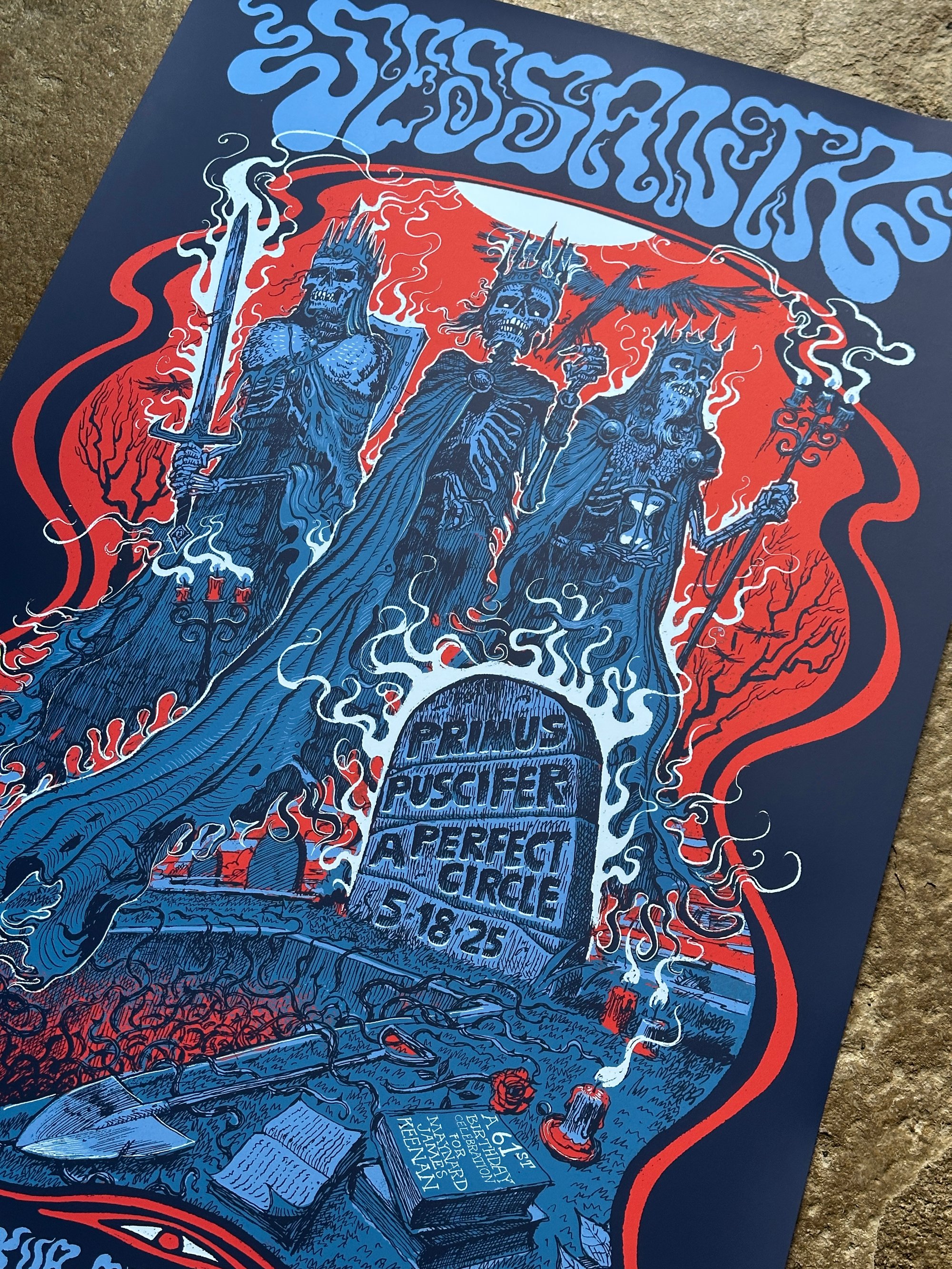 These are the artist proofs of the screenprinted poster I designed for the Sessanta event in Fairbank, VA. Featuring Primus, Puscifer and A Perfect Circle.